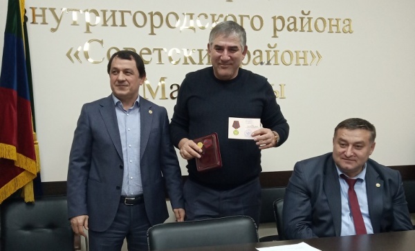 В Актовом зале администрации Советского района города Махачкалы прошло награжде­ние отличившихся ополченцев в период собы­тий августа-сентября 1999 года на территории Дагестана. Указом Главы РД от 20 августа 2019 года № 75 они отмечены юбилейной медалью «20 лет разгрома международных бандфор­мирований». Согласно указу она присуждает­ся участникам отрядов самообороны, высту­павшим против международных террористов, вторгшихся на территорию республики. От имени руководителя региона медали им вручил глава муниципалитета Пахрутдин Залибеков.