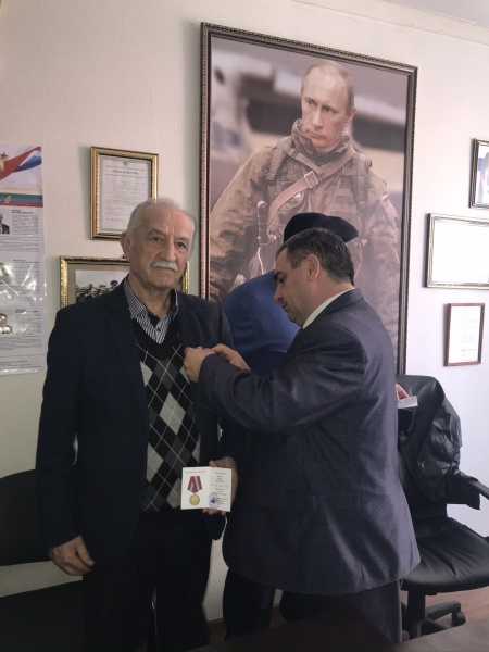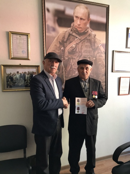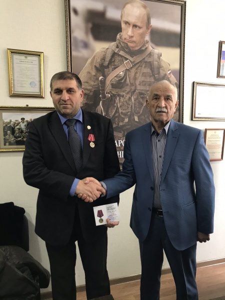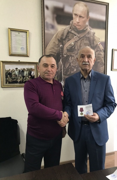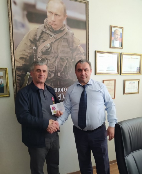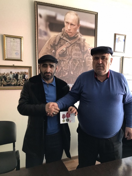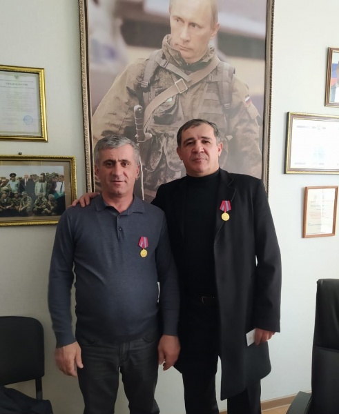 Медали вручали командир ДРОО "Народное ополчение 1999 года "Интербригада" Абилаев Арсен Умалатович, и.о. командира ДРОО "Народное ополчение 1999 года "Интербригада" Муталимов Муталим Магомедович, заместитель командира ДРОО "Народное ополчение 1999 года "Интербригада" Ильясов Магомед Зулпокарович, начальник штаба ДРОО "Народное ополчение 1999 года "Интербригада" Абдулкадыров Ухума Гаджиевич.