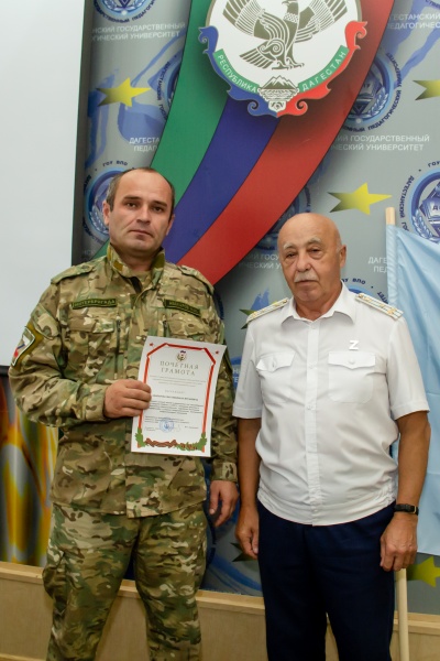 В конференц-зале Даггоспедуниверситета состоялась встреча, посвященная 23-й годовщине разгрома международных бандформирований вторгшихся в Дагестан в августе 1999 года. Поздравить участников и гостей мероприятия со знаменательной датой пришли, Арсен Махмудов – заместитель министра по национальной политике и делам религий РД, Магарам Алиджанов - председатель республиканской организации ветеранов, Муталим Муталимов командир Интербригады, Абдула Фаталиев – герой Кавказа, участник боевых действий, Нариман Абдулмагомедов – полковник МВД, член президиума Совета ветеранов МВД РД, Арсен Абилаев – заместитель председателя Союза десантников Дагестана, Магомедали Абакаров – председатель военных профсоюзов Махачкалы, Зейнетдин Исаев – заместитель председателя Совета ветеранов войск правопорядка по РД, Магомед Гусейханов – руководитель ДРО «Волонтеры Победы», Зульфия Ильясова – народная артистка Дагестана, директор школы искусств, Рукият Сатыбалова – заслуженная артистка Дагестана, Нурали Татданов – певец, музыкант, командиры ополчения районов и городов, общественники, представители учреждений культуры и искусства и др.